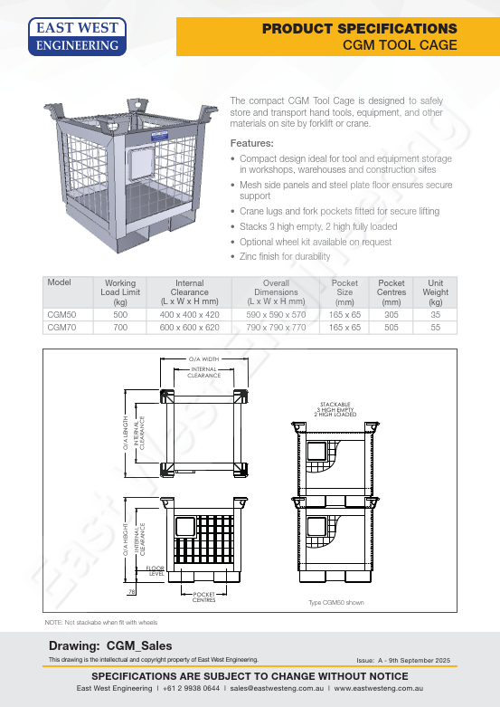 The compact CGM Tool Cage is designed to safely store and transport hand tools, equipment and other materials onsite by forklift or crane.
